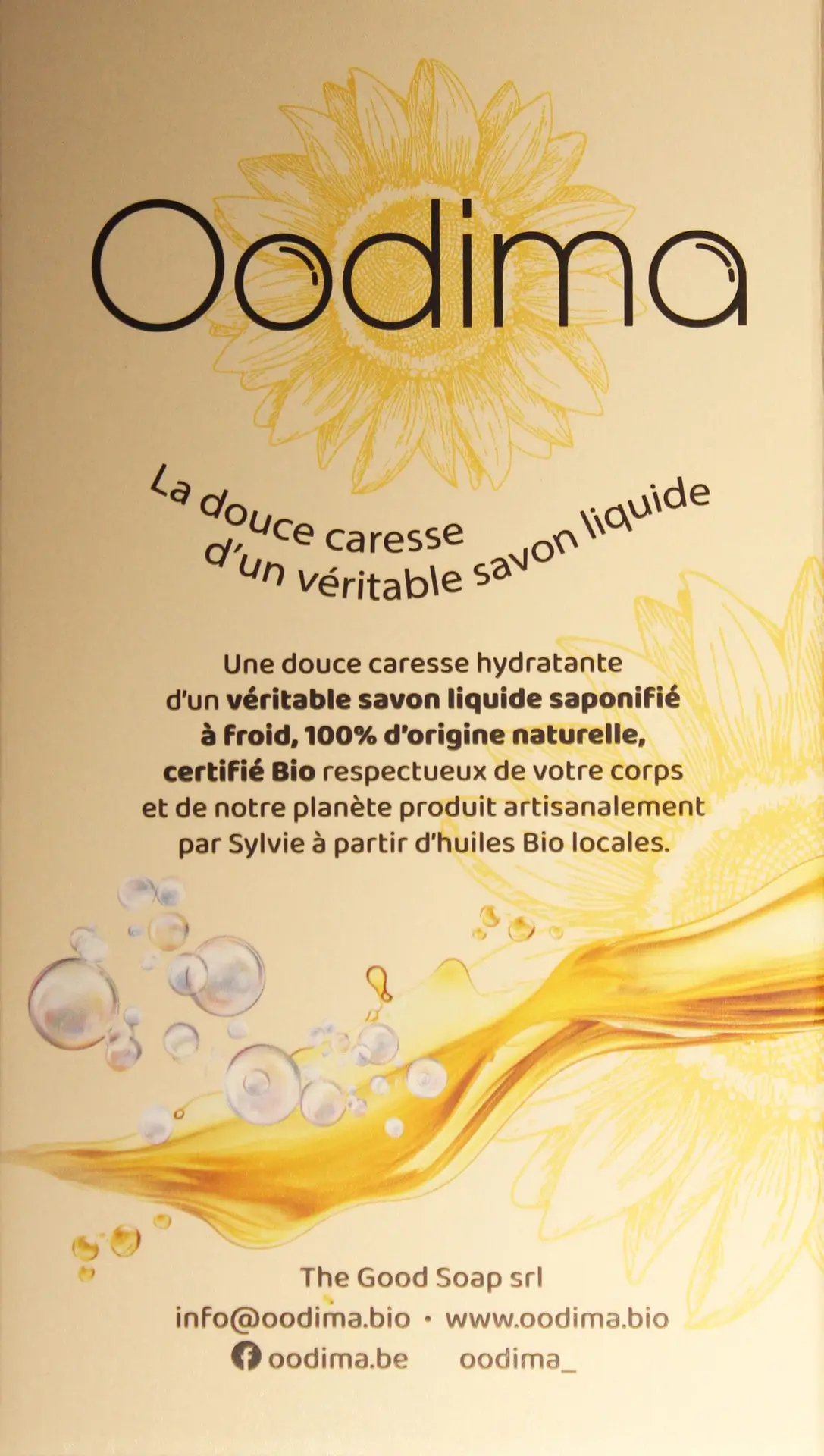 Ingrédients savon mains : Aqua, potassium sunflowerseedate (hybrid)**, potassium cocoate**, potassium castorate**, potassium hempseedate**, mineral salt, glycerin**, coco-glucoside, citric acid, citrus sinensis peel oil expressed*, pelargonium graveolens oil*, cananga odorata flower oil*. Contient du citronellol***, géraniol***, linalool***, limonène***.
